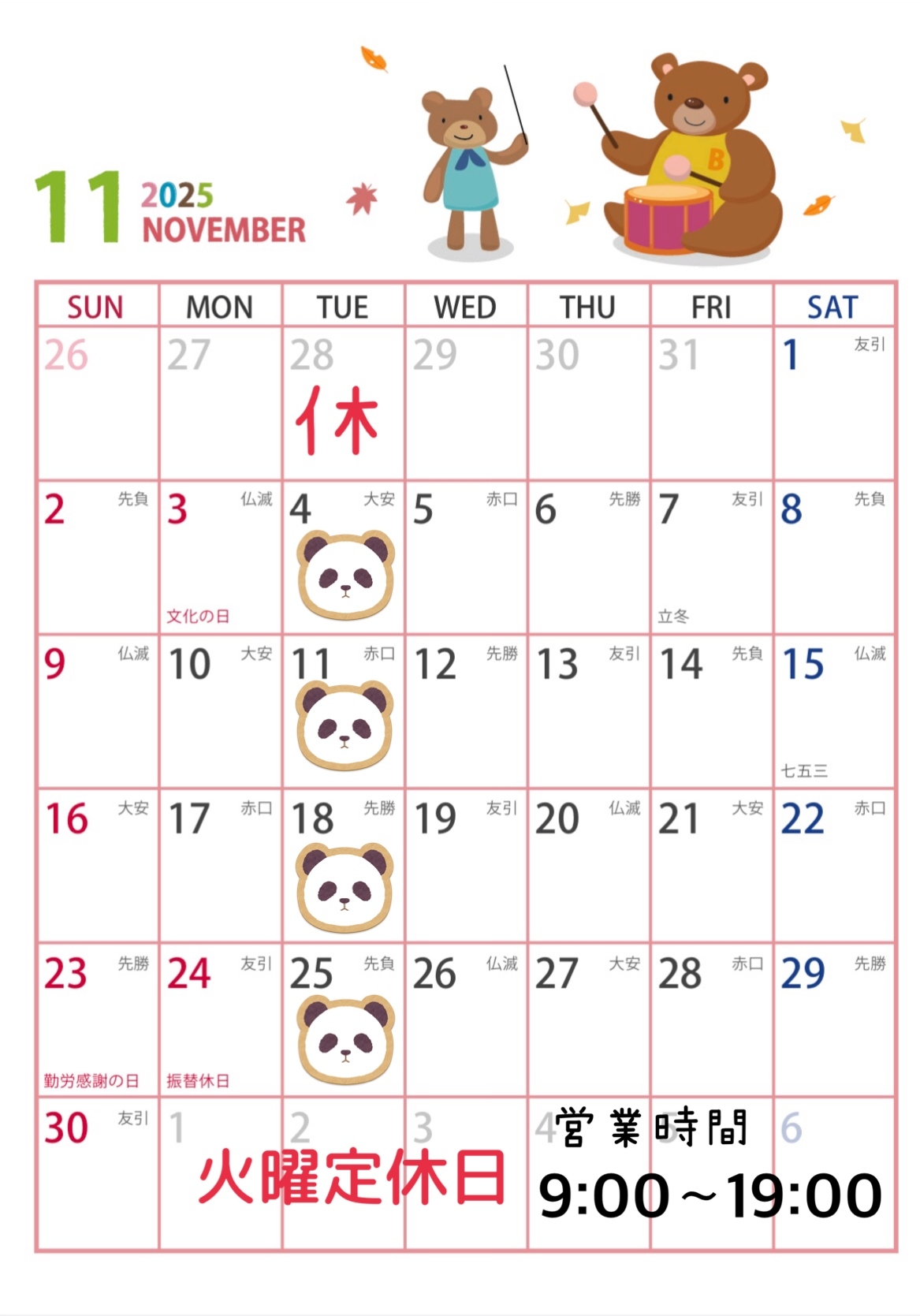 ★11月の営業カレンダー★