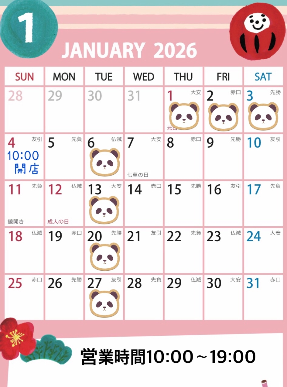 ☆1月の営業日カレンダー☆