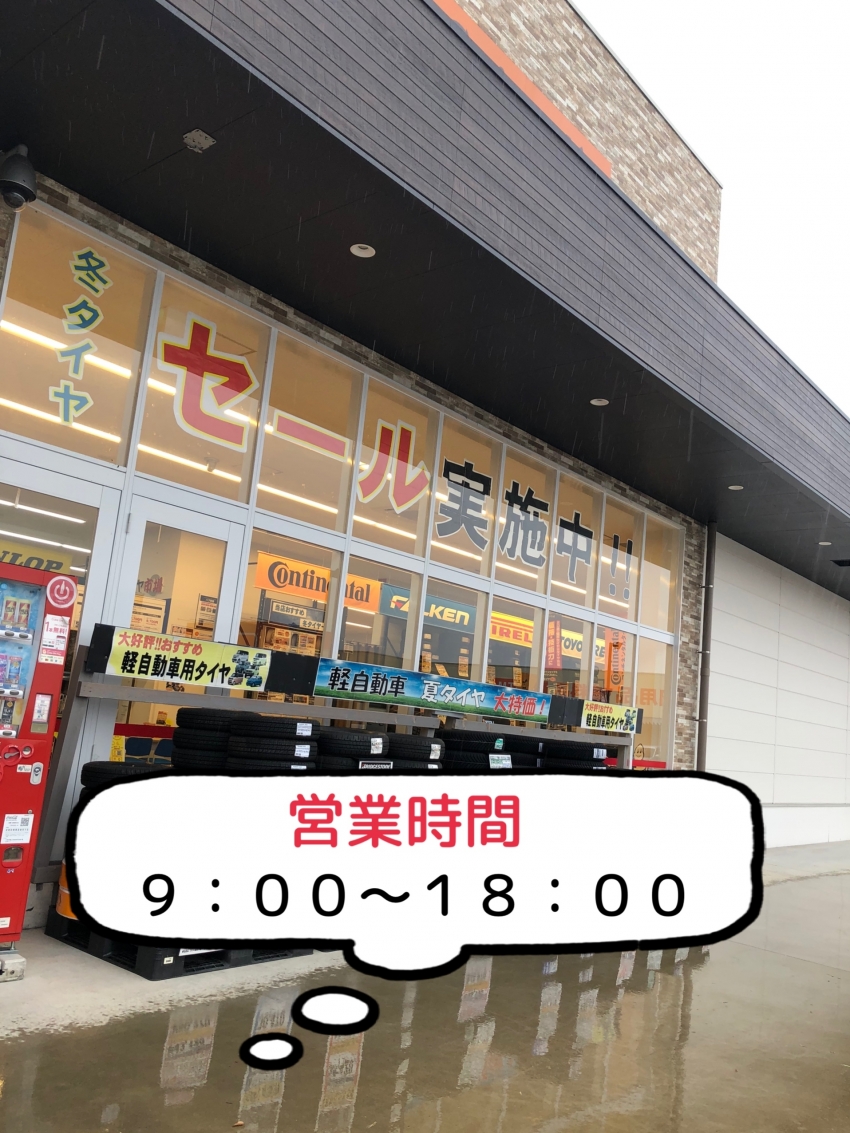 AM9:00~PM7:00 (ピット作業受付:AM9:00~PM6:00)1月/2月/5月/6月/7月/8月/9月