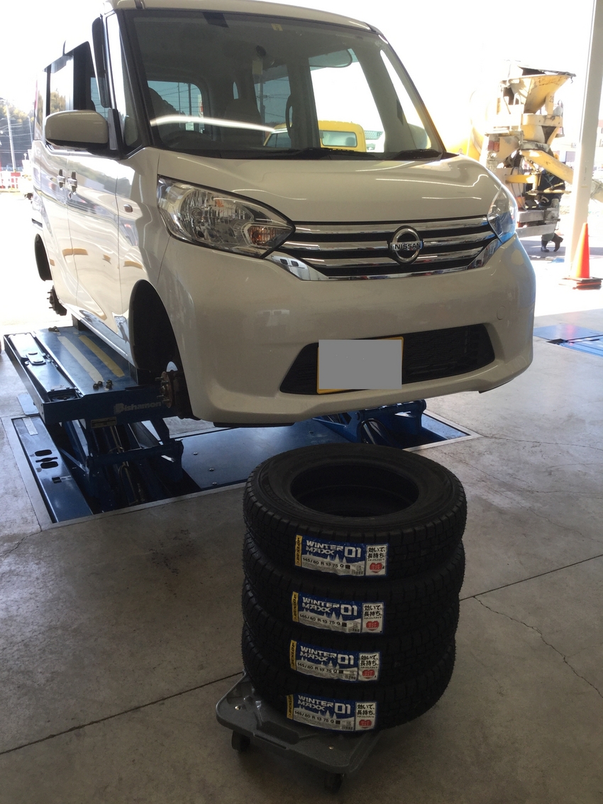 本日は、日産ルークスでスタッドレスタイヤの交換です。お買い上げありがとうございます!