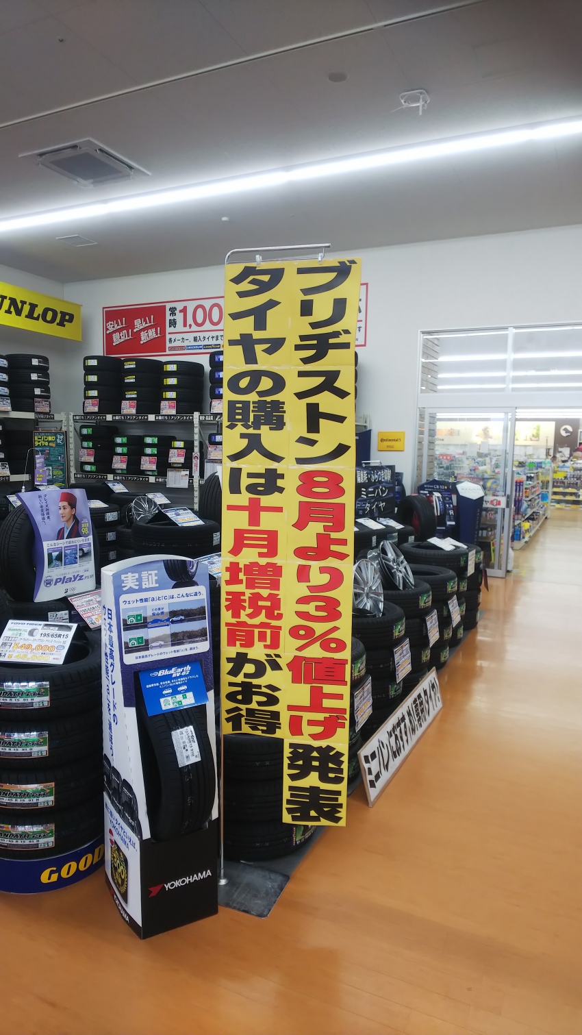 先日ブログで10月の増税前にタイヤの購入がお得とお話ししましたが、