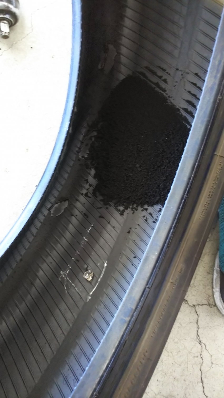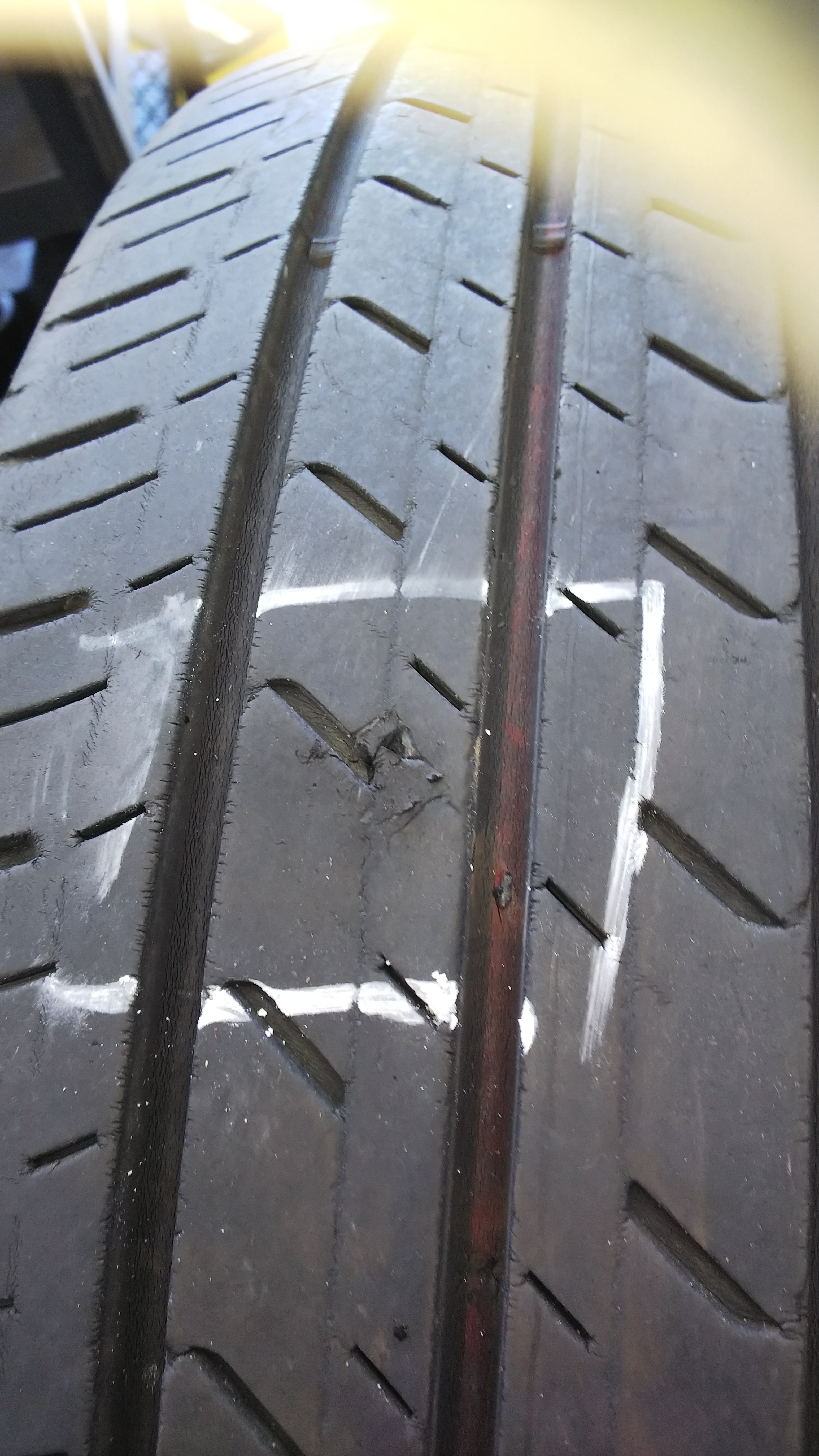 強化ガラスのようなブロック片の物がタイヤの中に入っていました。