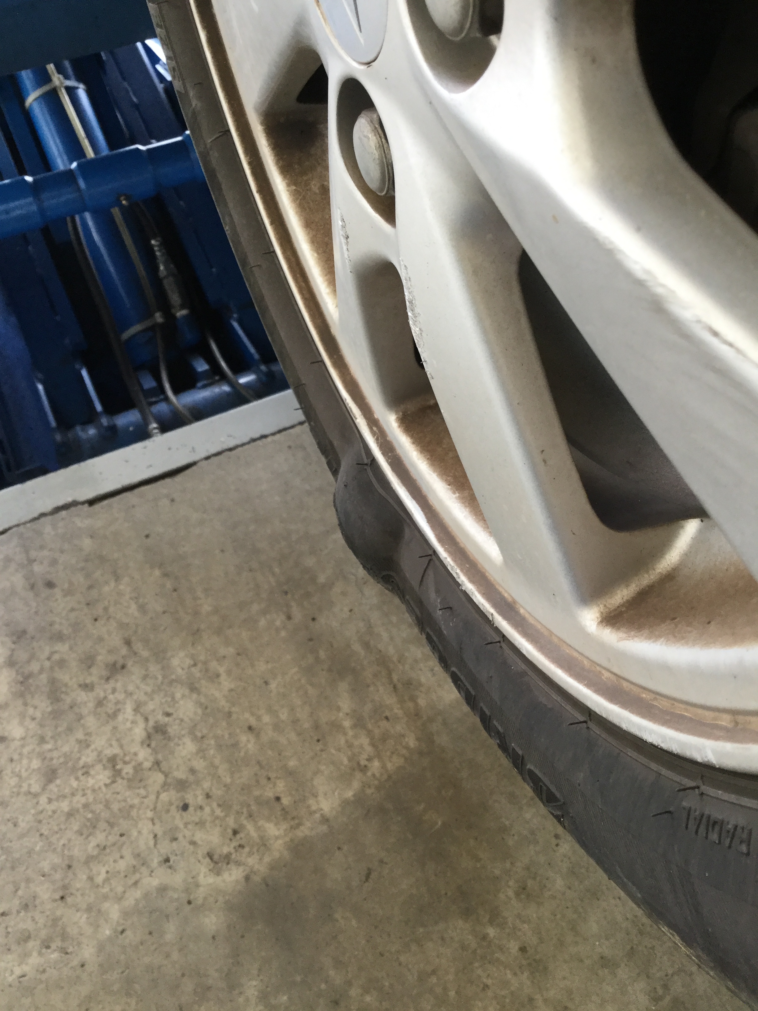 先日タイヤのサイド部がふくらんでいるとお客様が駆け込みがありました!