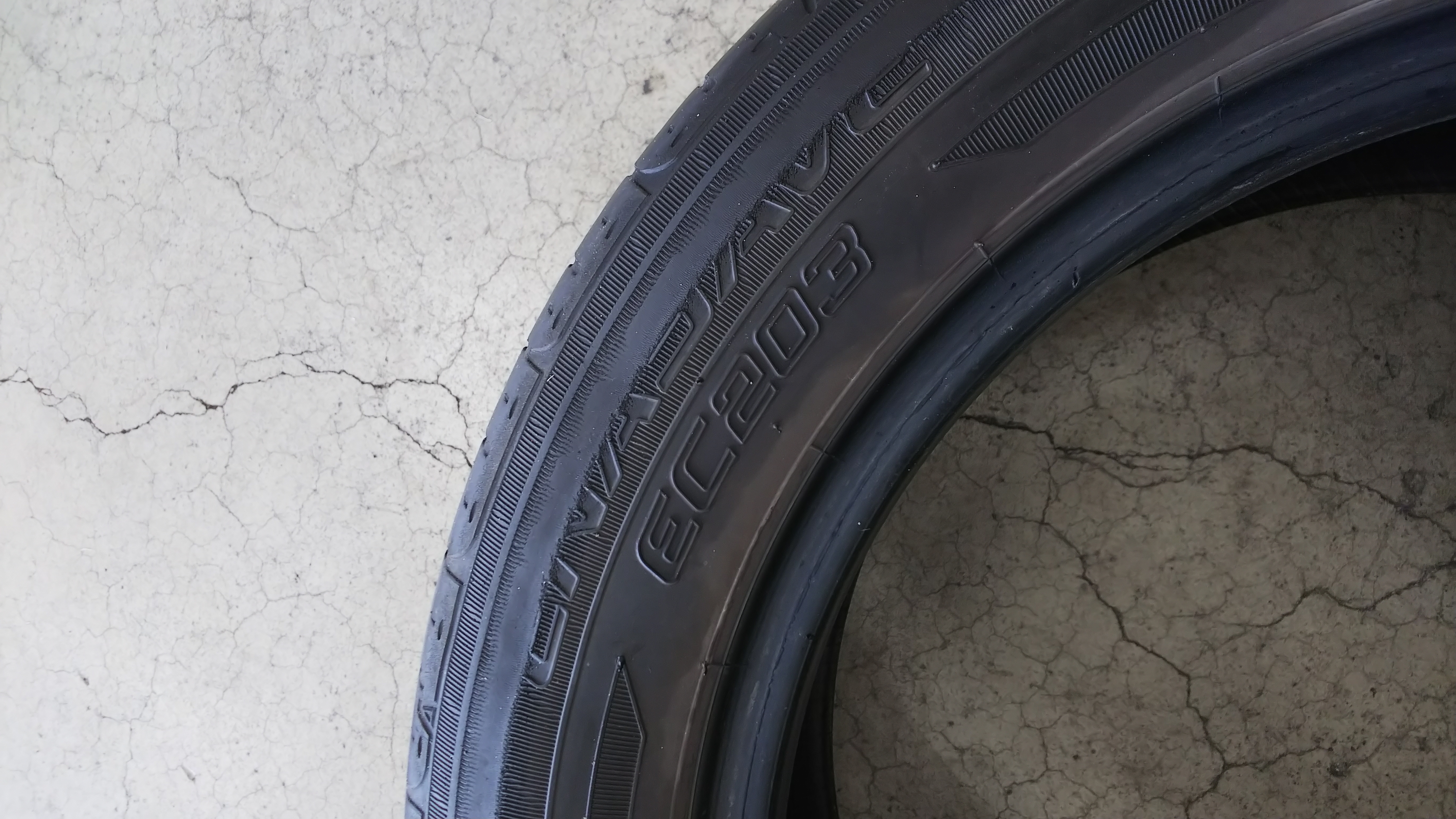反対側のタイヤを確認すると6年目でタイヤショルダーが溝が無く左右の2本交換が