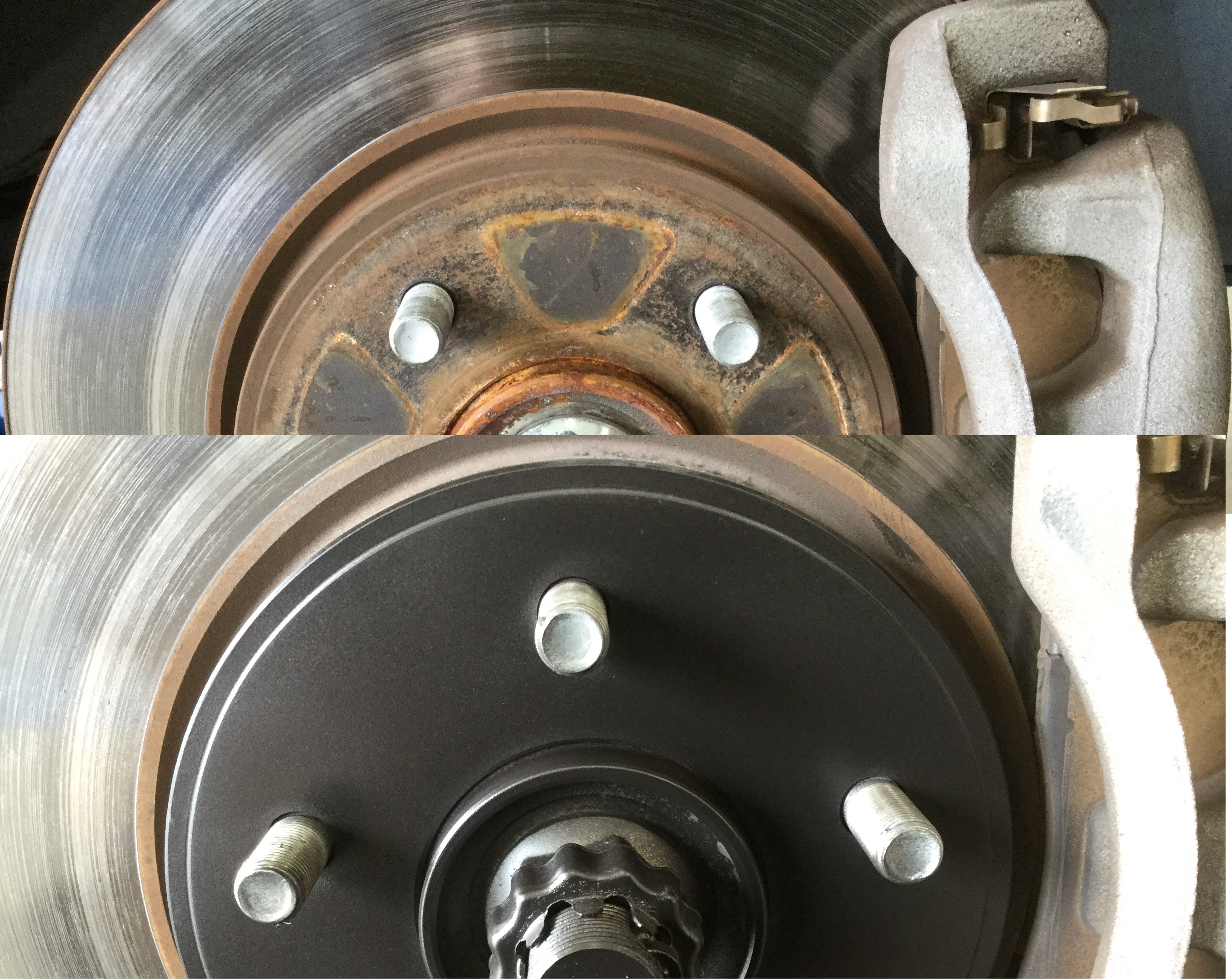 ハブの錆を取って磨いて黒い防錆塗料を塗布させて頂きました。(上が施工前、下が施工後です)
