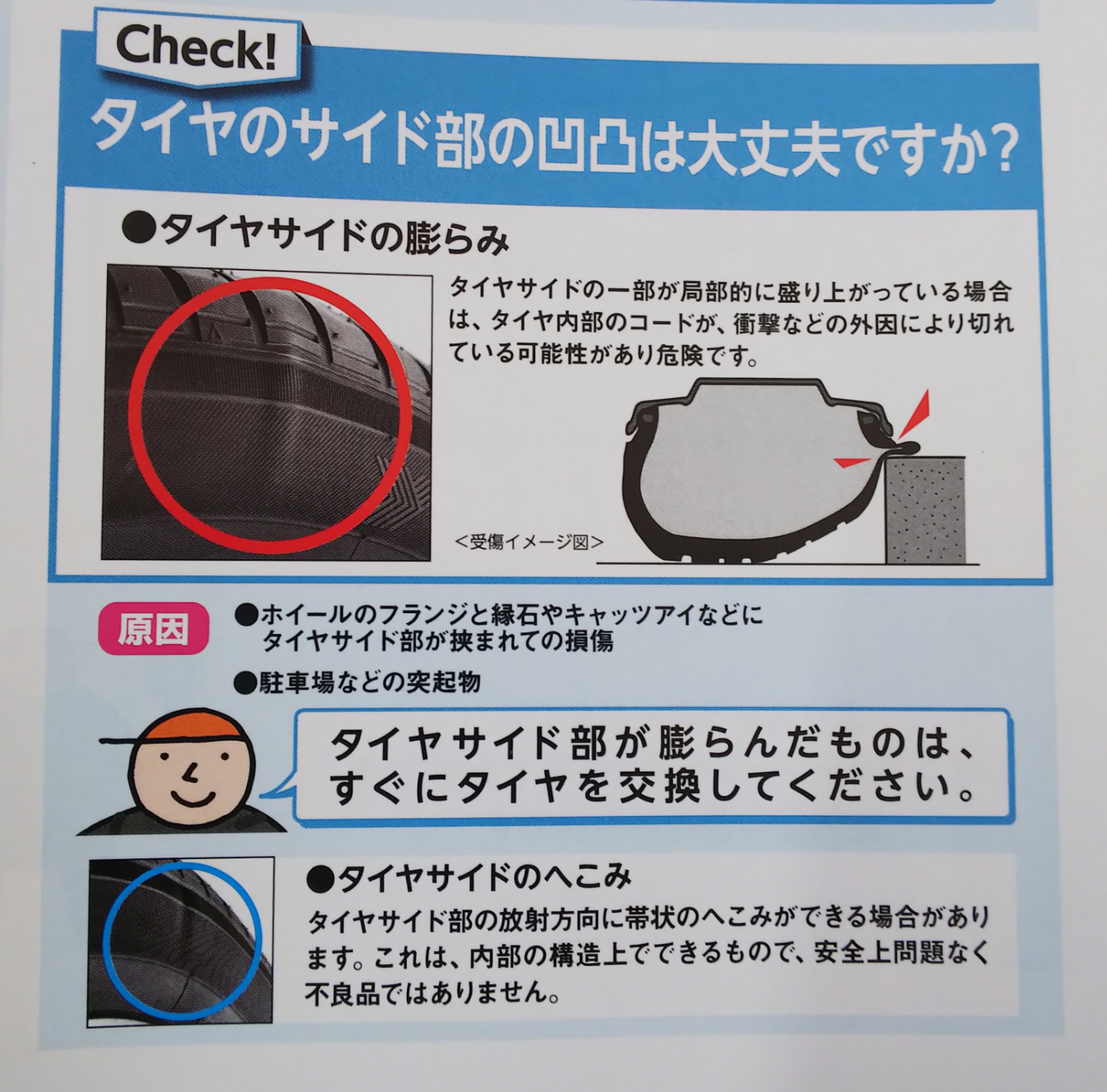 衝撃などが原因でタイヤ内部のカカースコード