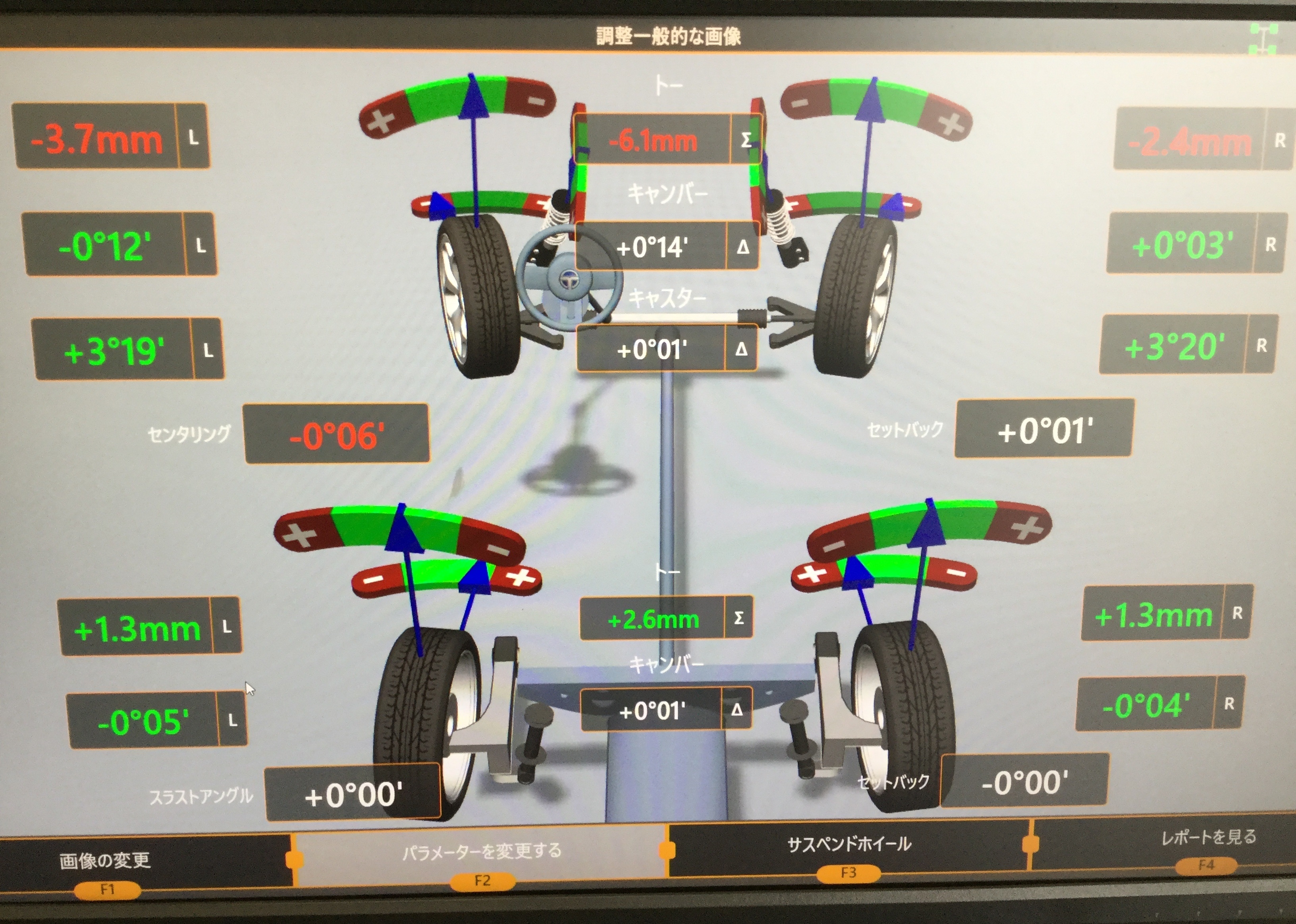 素敵な女性の方でしたが、ご了承頂けたので早速アライメント調整に取り掛かりました!