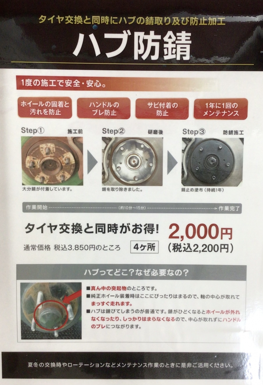 交換時ハブ防錆を依頼して頂くと通常3,850円が2,200円に!