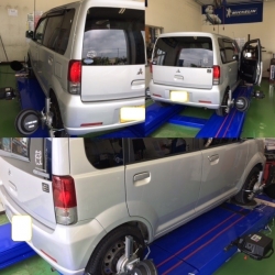 ご予約のフリードスパイクのお客様にタイヤ交換とホイールアライメント