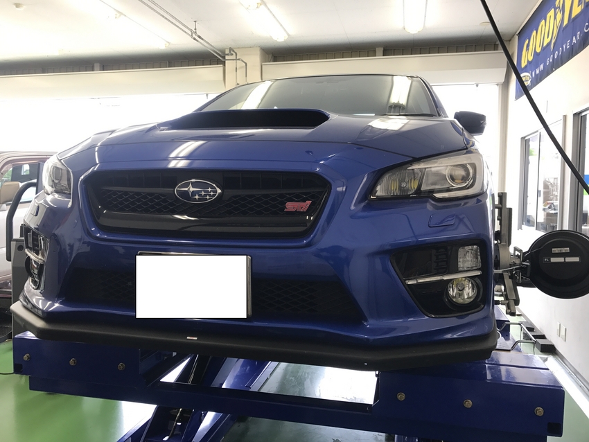 本日3台目はスバルのSTIのホイールアライメント調整です。