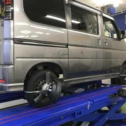 車を大事になさっているお客様で、以前からホイールアライメントも気になっていたということで、交換と同時にホイールアライメント測定&調整を行いました。