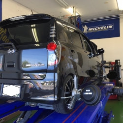 リア、フロント共にトゥが狂っており、タイヤも偏磨耗していたため、