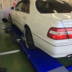 お客様は、タイヤの偏磨耗を気にされており、ホイールアライメントの測定をしたところ、フロントのトーがだいぶ狂っておりました!メーカー指定の基準値に調整させていただきました。