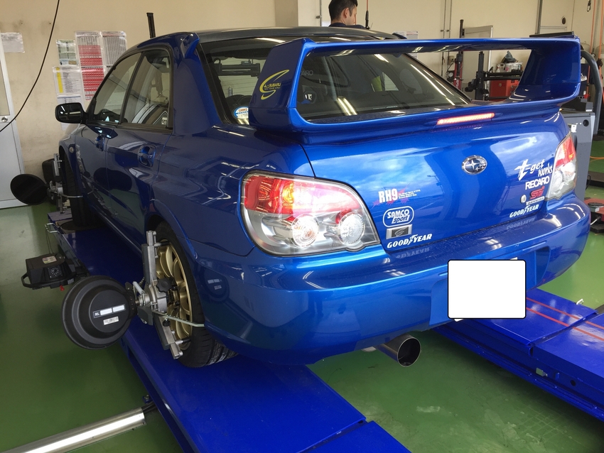 フロント・リア共にトーに狂いがありましたので、車の使い方・好み等をお聞きし、メーカーの基準値内に調整させていただきました。