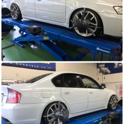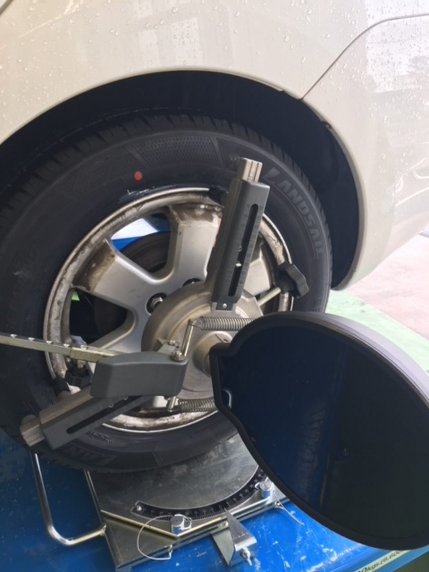タイヤ&ホイールにキズが有りましので、オーナー様にお聞きしたら縁石に強くぶつけてしまっていたので、ご一緒にアライメント調整も行っていただきました。