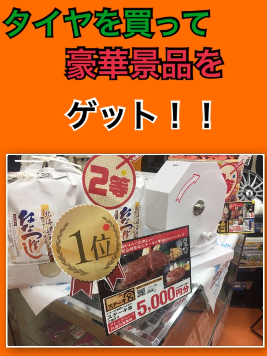 スタッドレスタイヤまたはオールシーズンタイヤを4万円以上ご購入の方に豪華景品がその場で当たる