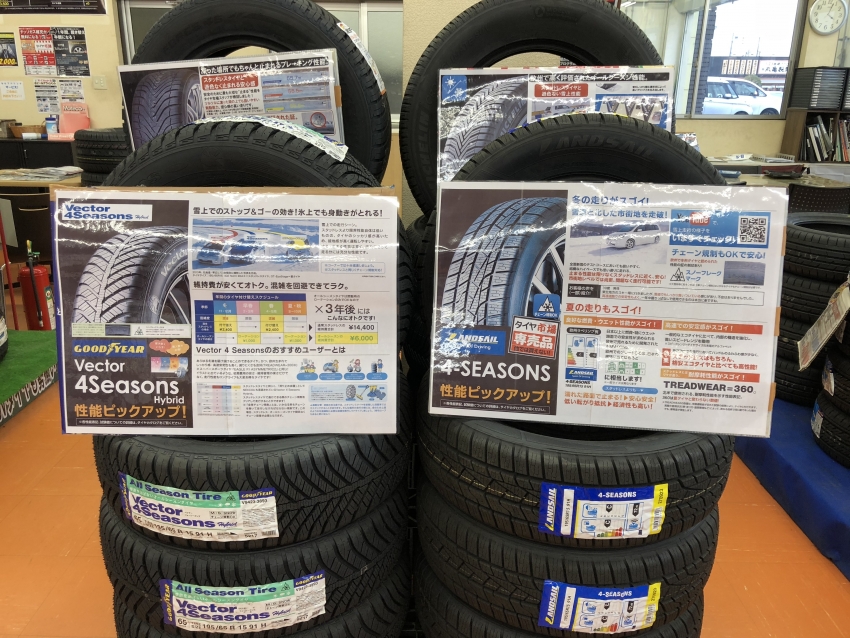 店内の一部にオールシーズンタイヤの小さなコーナーを作りました!