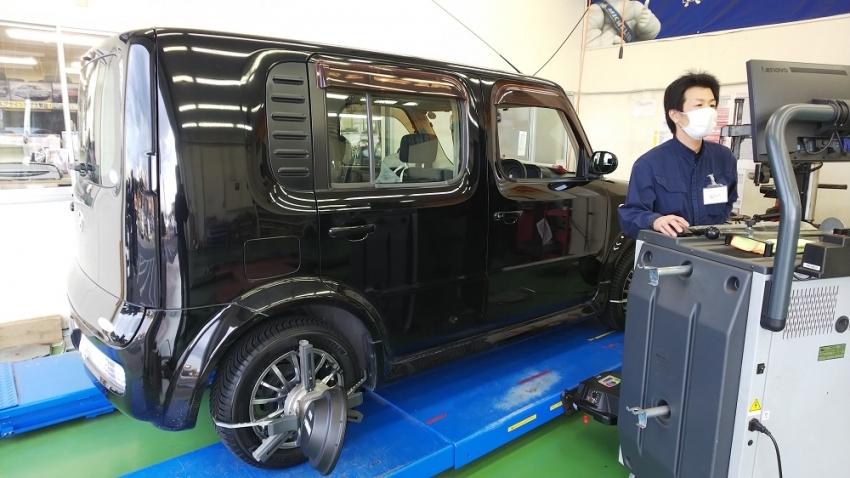 それから、縁石に乗り上げたらしい後が残っていたのでお尋ねすると、やはりそうだとの事。アライメント調整でタイヤの減りが遅くなりますとご説明し、心をこめてメンテナンスさせていただきました。