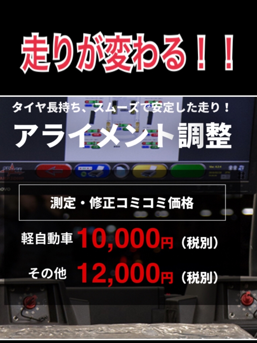 まっすぐ走るときのハンドルがズレている、車の足回りを交換したなど、
