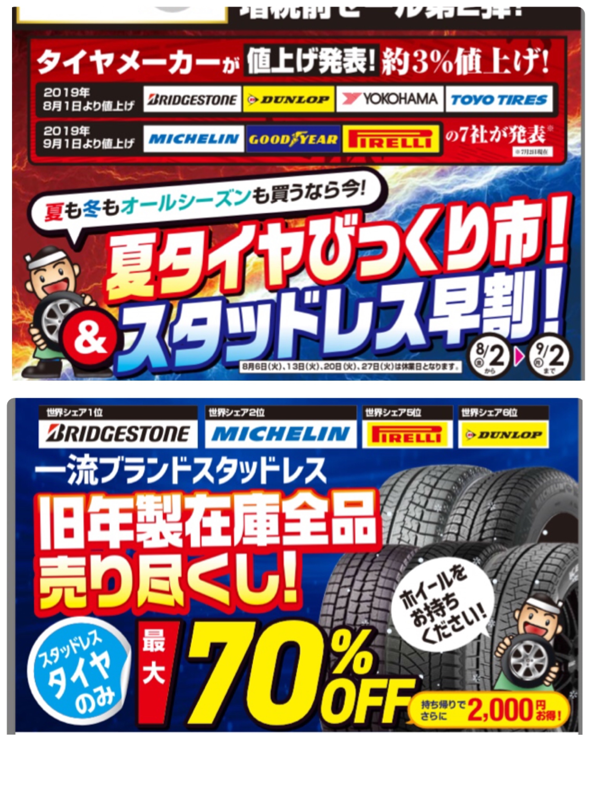 ミシュラン・グッドイヤー・ピレリが値上げになります