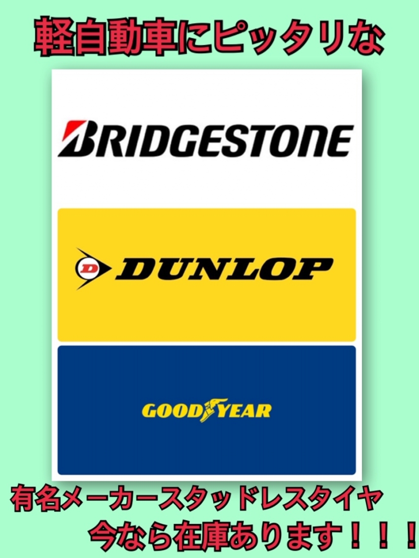 軽自動車サイズにピッタリなスタッドレスタイヤ三種類のご紹介です!!