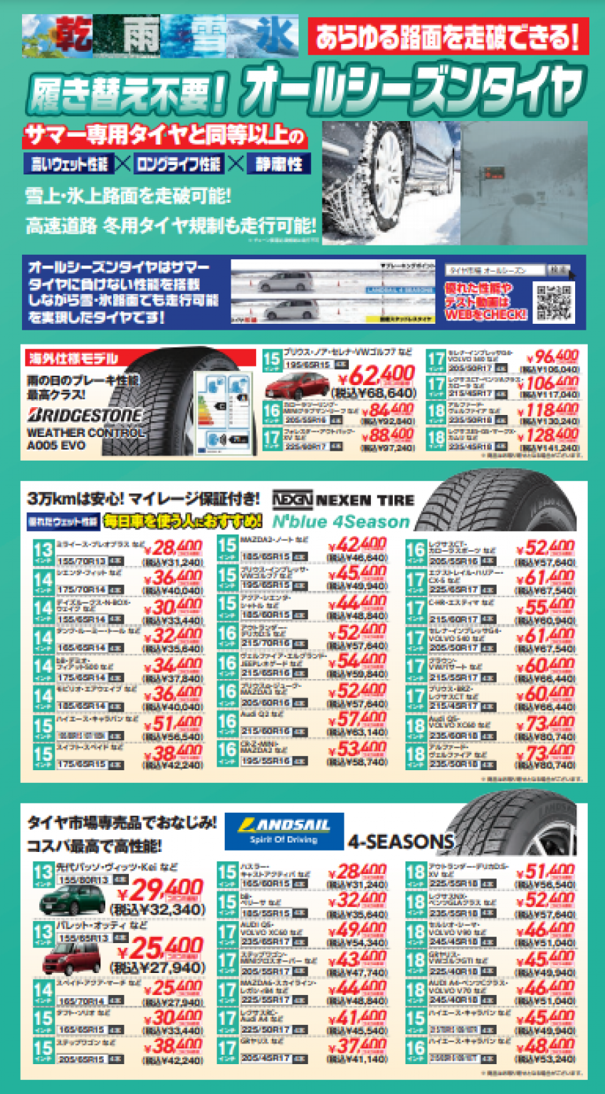 近年注目されているオールシーズンタイヤが今年も人気です!