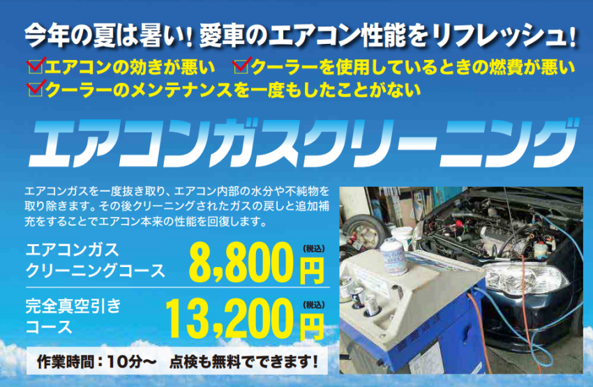 エアコンの効きが気になる方必見!!エアコンガスのメンテナンス行っております!!