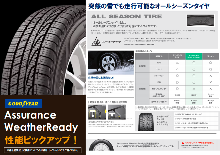 お値段もお求めやすいので、初めてオールシーズンタイヤを試される方には