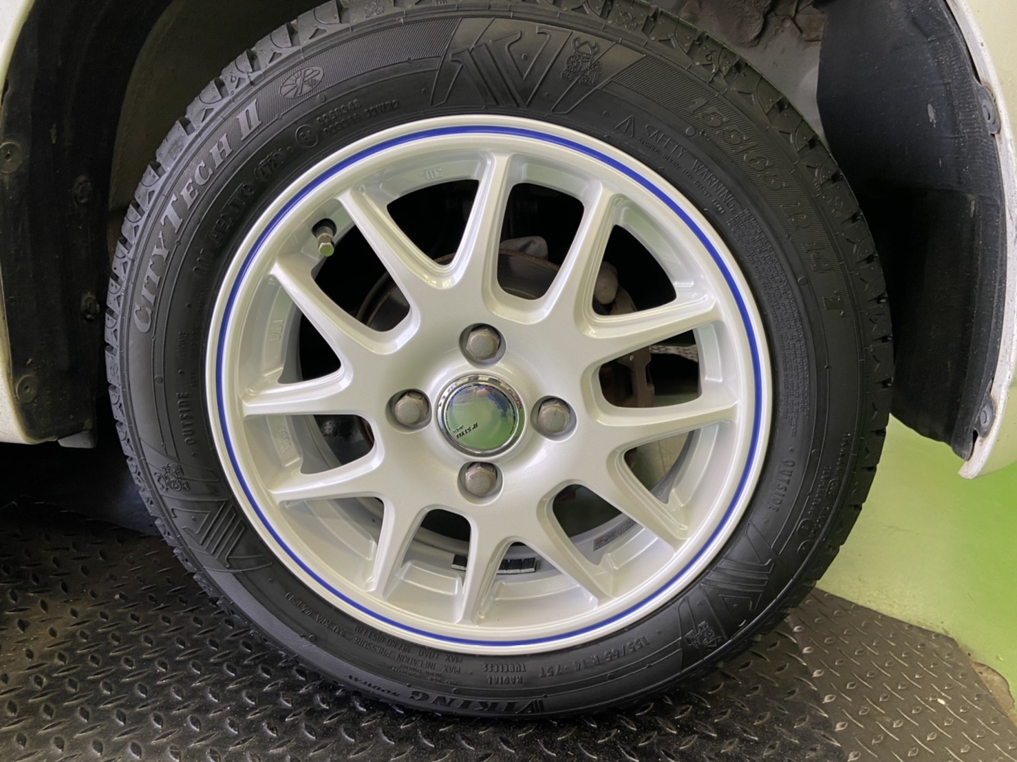 車体の色と同じホワイトのホイールを取り付けて