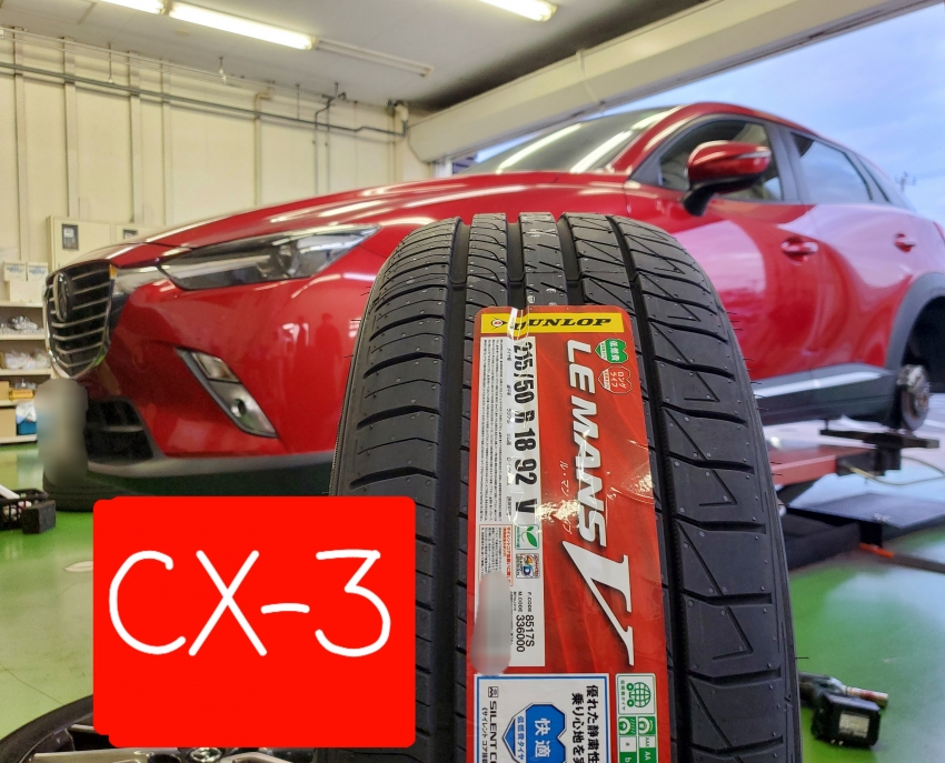 大人気CXシリーズタイヤ交換(CX-3・ダンロップ・ルマンⅤ・215/50R18・ハブ防錆・アライメント調整)