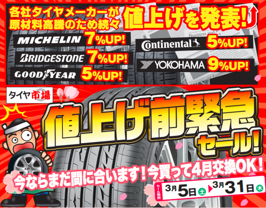 プレミアムタイヤ買うなら断然今がお得!値上げ前!!緊急セール開催中!!