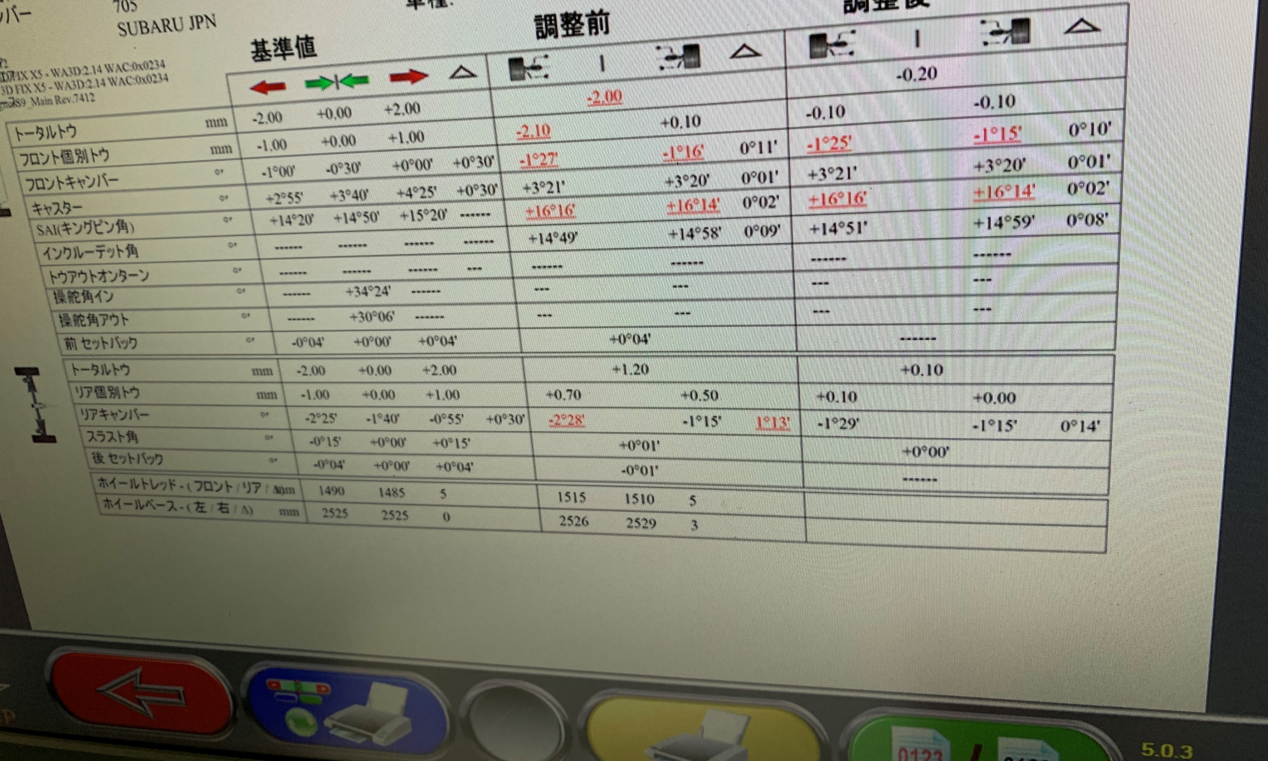 そのため今回このインプレッサはリアキャンバーも調整できるため、左右差均等に調整を行いました。