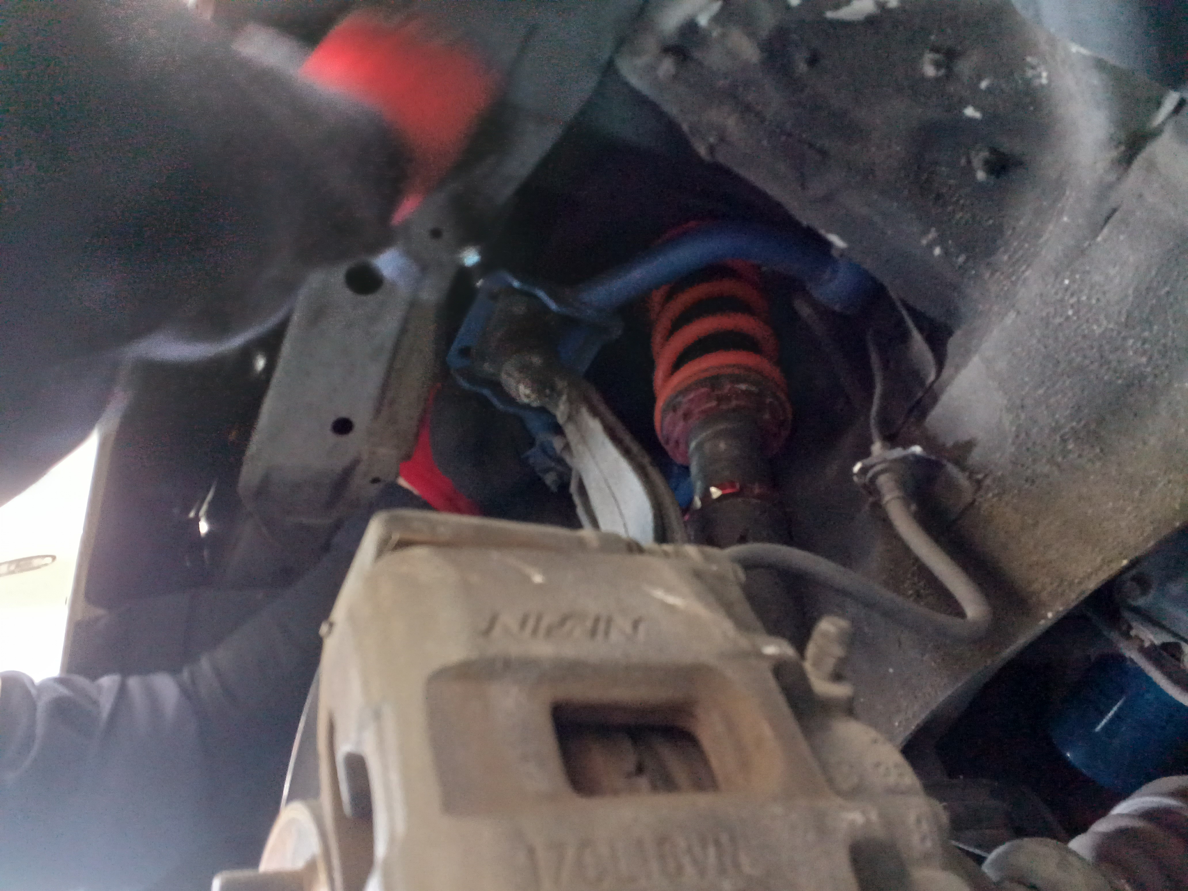 社外のフロントアッパーアームでナックルをスライドさせて