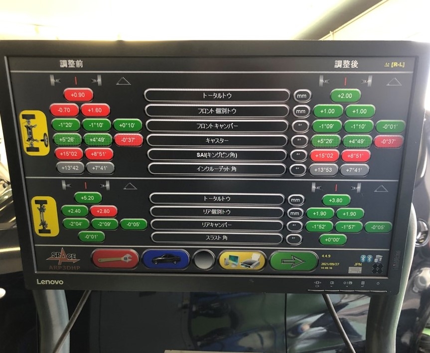 トゥ角、Rキャンバー角はメーカー基準値に調整させて頂き