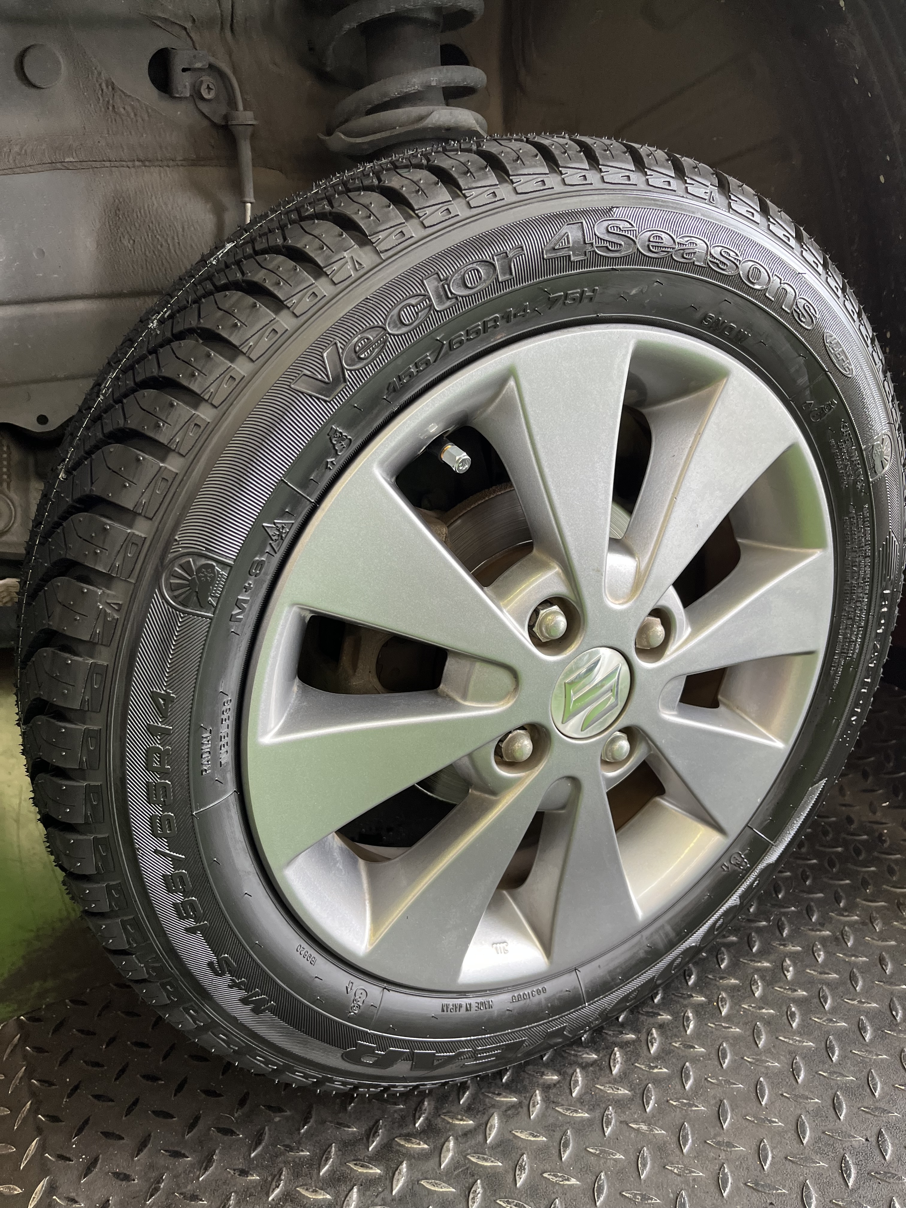 ワゴンRにグッドイヤーのオールシーズンタイヤ装着!1年中使えて便利!女性人気商品★サイズ155/65R14