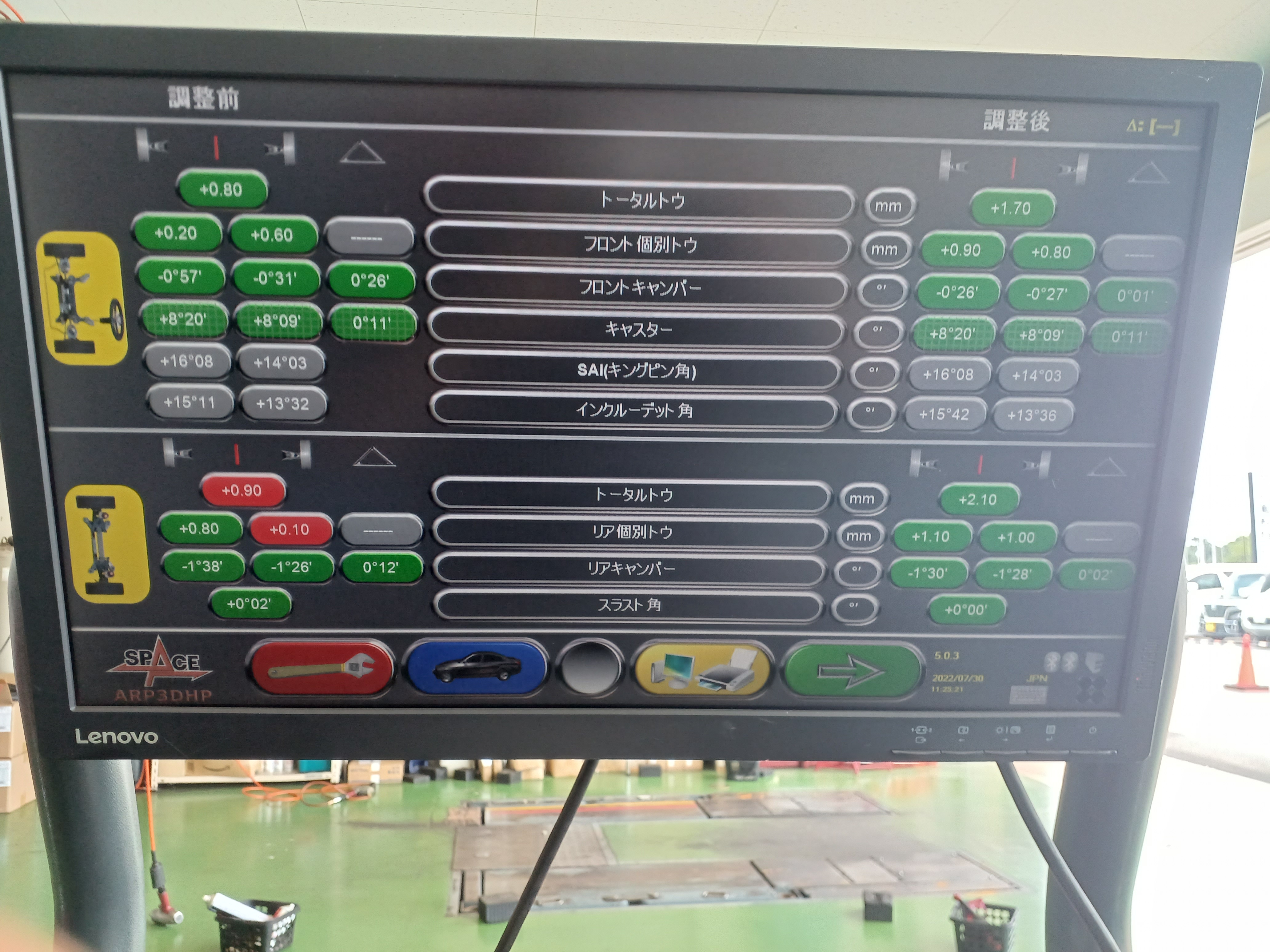 ハンドルセンターが気になるとの事でアライメント調整となりました!!