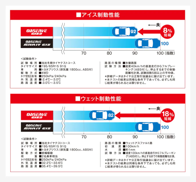 非対称パターンや新コンパウンドが、ロングライフの効きを実現!