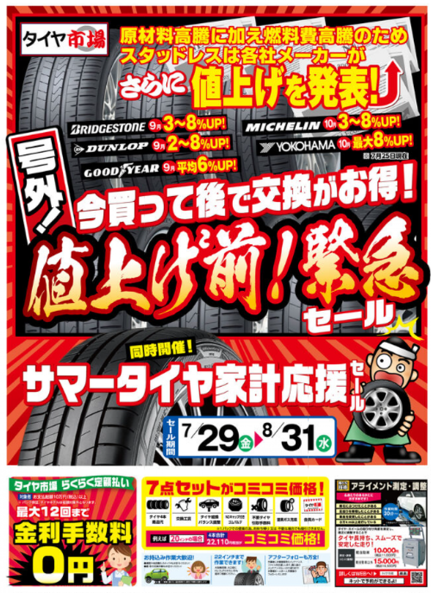 新品のタイヤで安心して夏休みのご旅行、帰省はいかがですか?