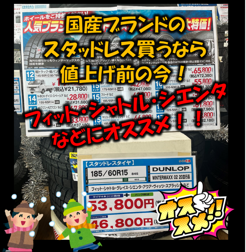 フィット・シャトル・シエンタなどにおすすめスタッドレス!