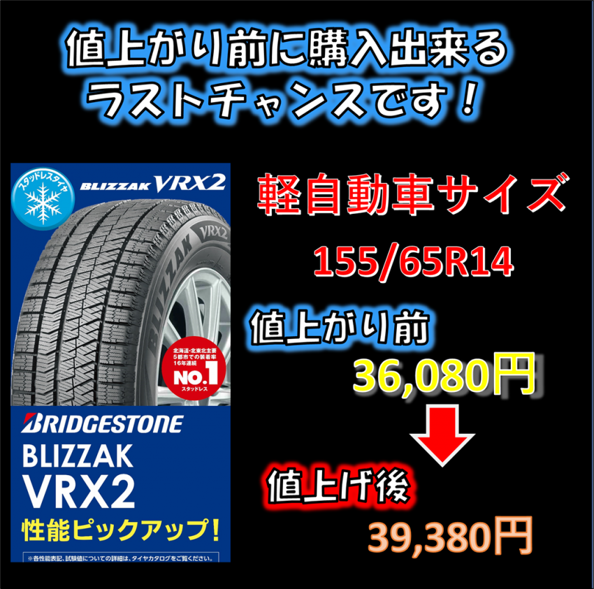 以前から告知していたタイヤの値上がりも来月から少しずつ始まっていきます!