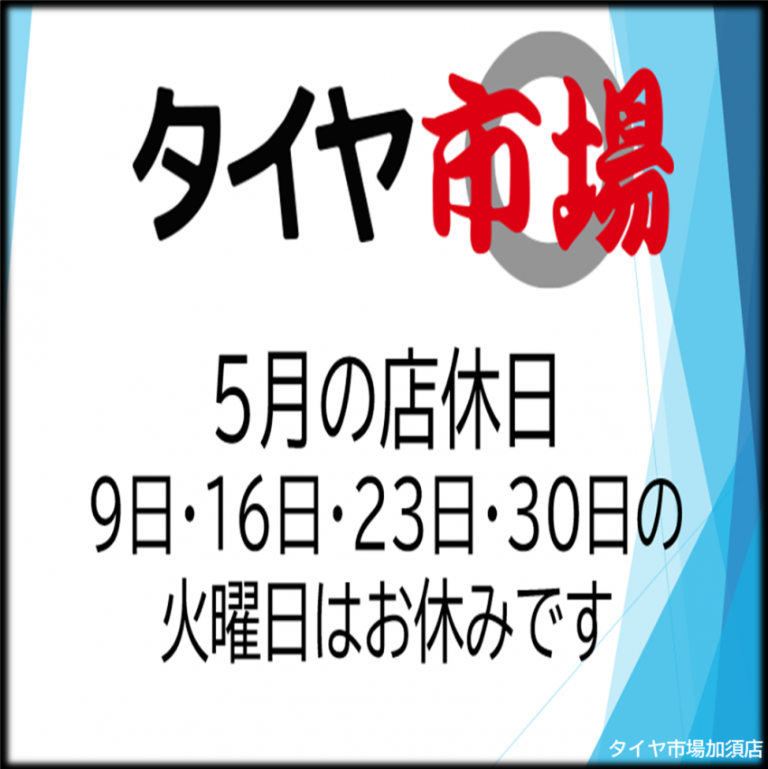 タイヤ市場加須店の5月店休日のお知らせ!