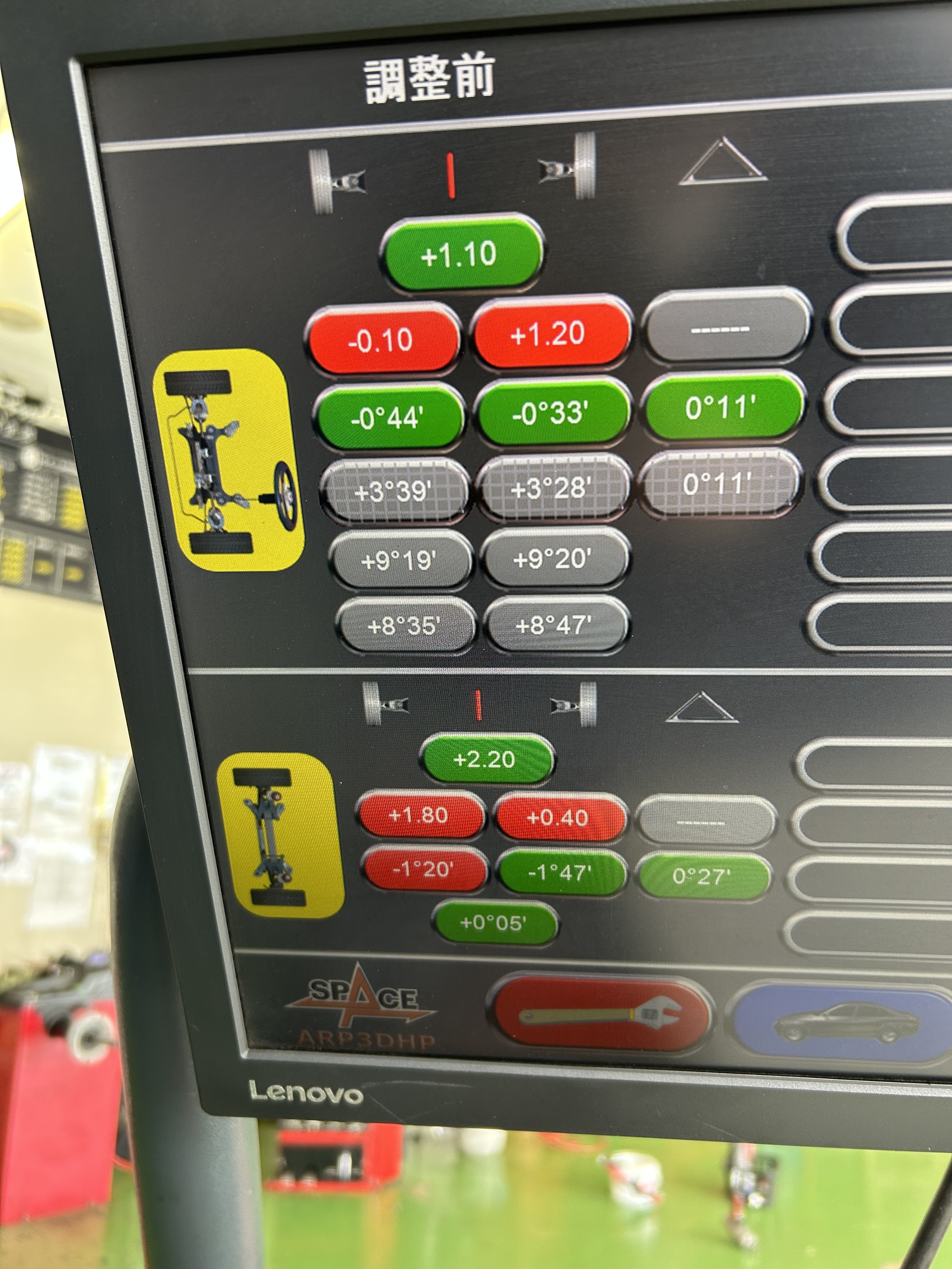 今回のお客様のお車はハンドルセンターのズレと左流れの症状が出ており