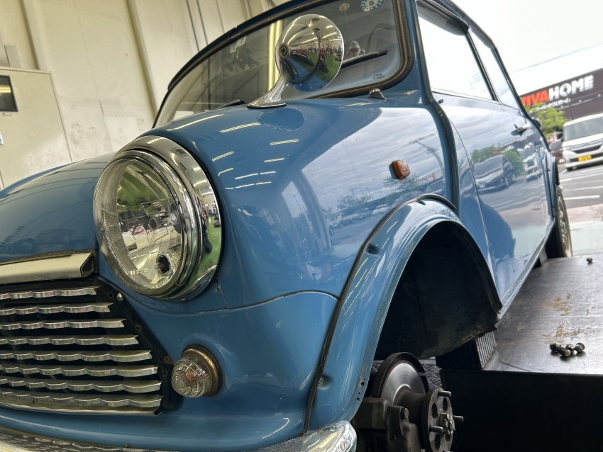 今回タイヤ交換でご入庫のお車はミニミニ大作戦でお馴染みのMINIになります。