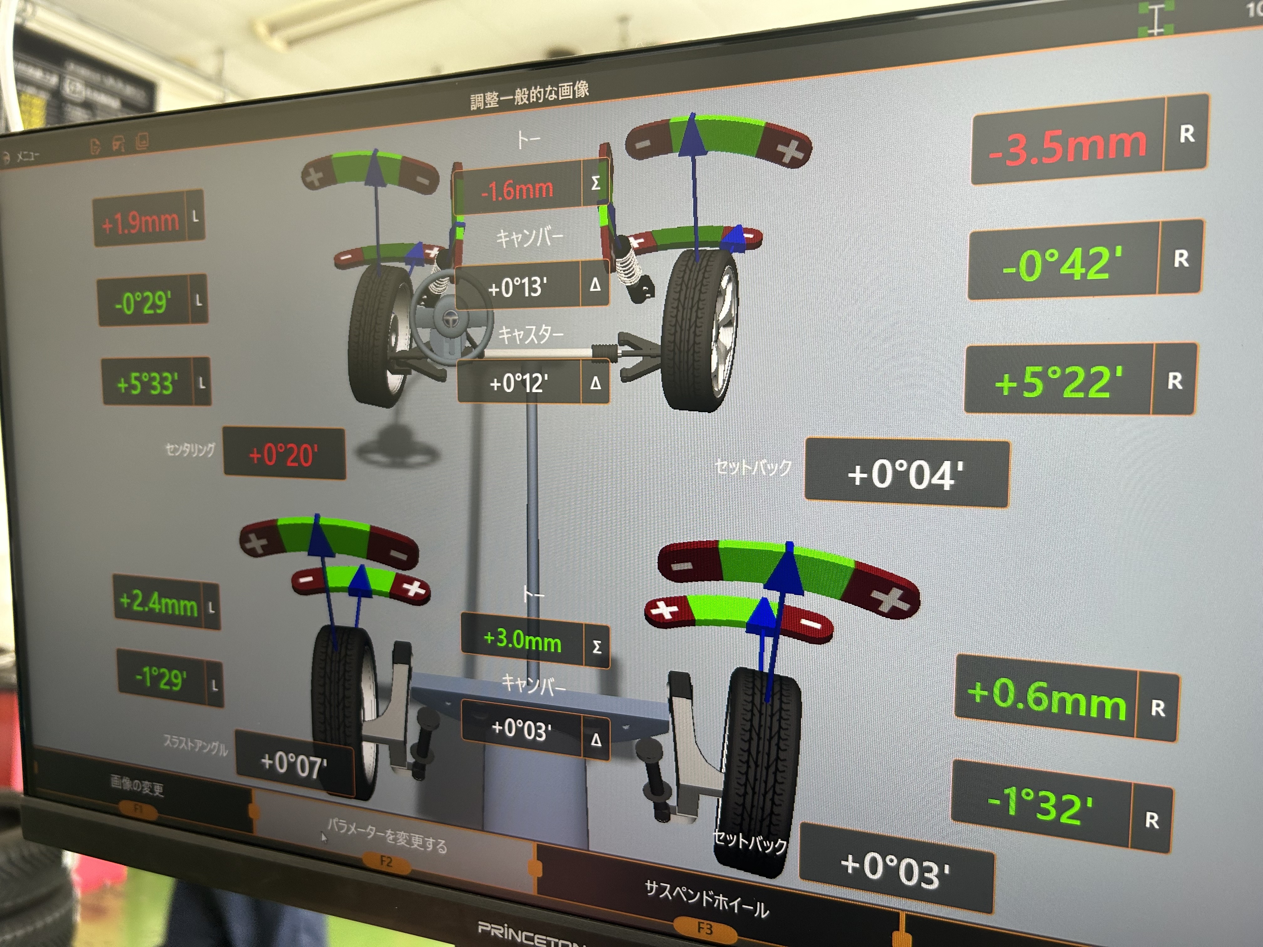 今回のお客様のお車はハンドルセンターのズレの症状が出ており