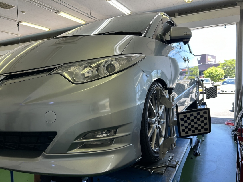 トヨタ:エスティマのアライメント調整させていただきました!!