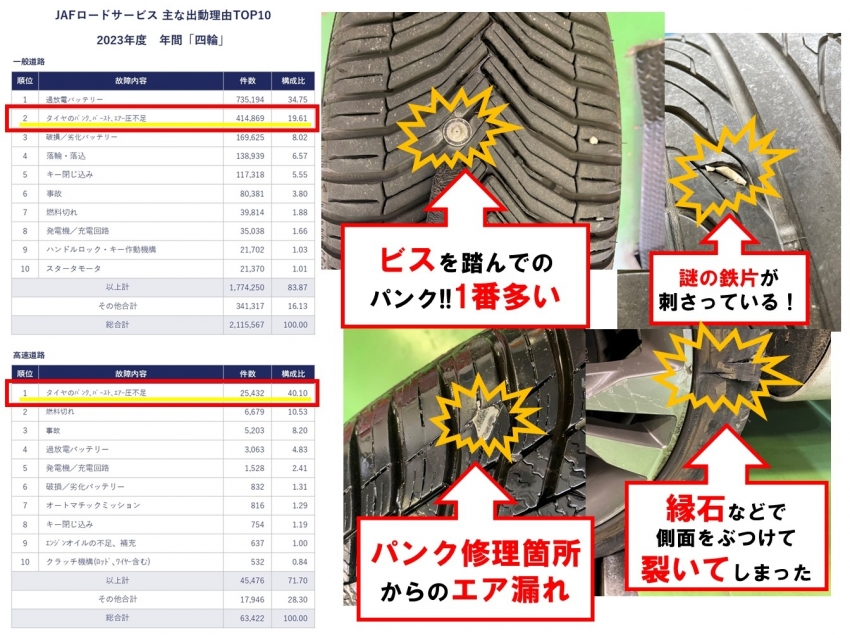 またJAFの出動要請でも、タイヤ関係のトラブルが