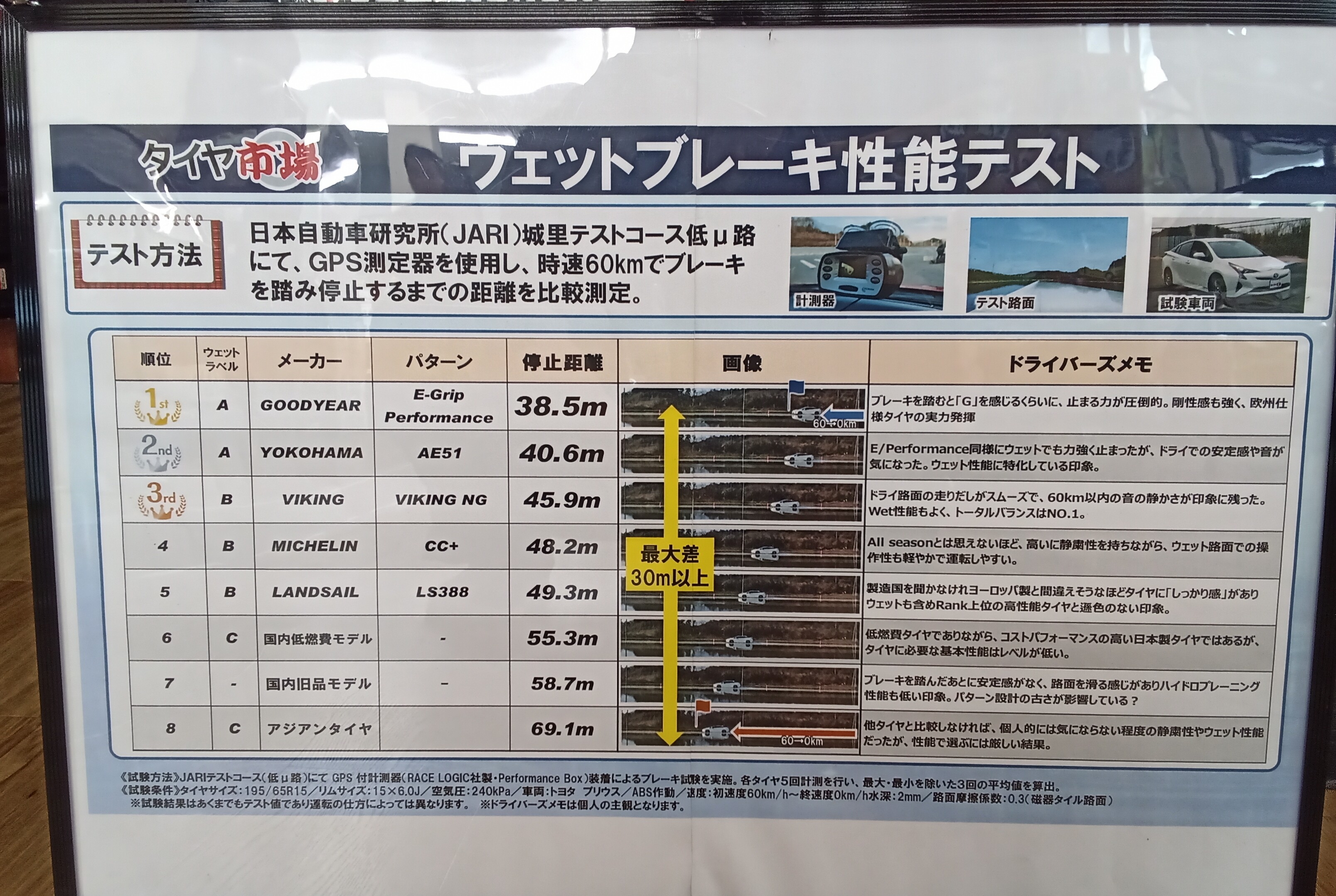 ウェットグリップ性能が高い方が雨の日の性能はもちろん、