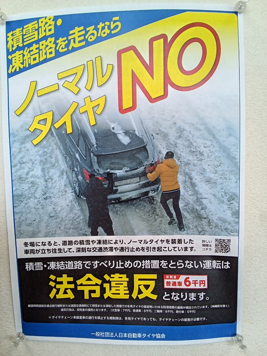 スタッドレスタイヤ、オールシズンタイヤで走りましょう。