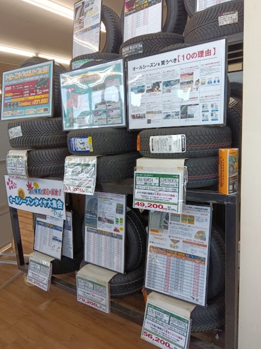 タイヤ市場加須店ではオールシーズンタイヤ、スタッドレスタイヤの販売も行っております。