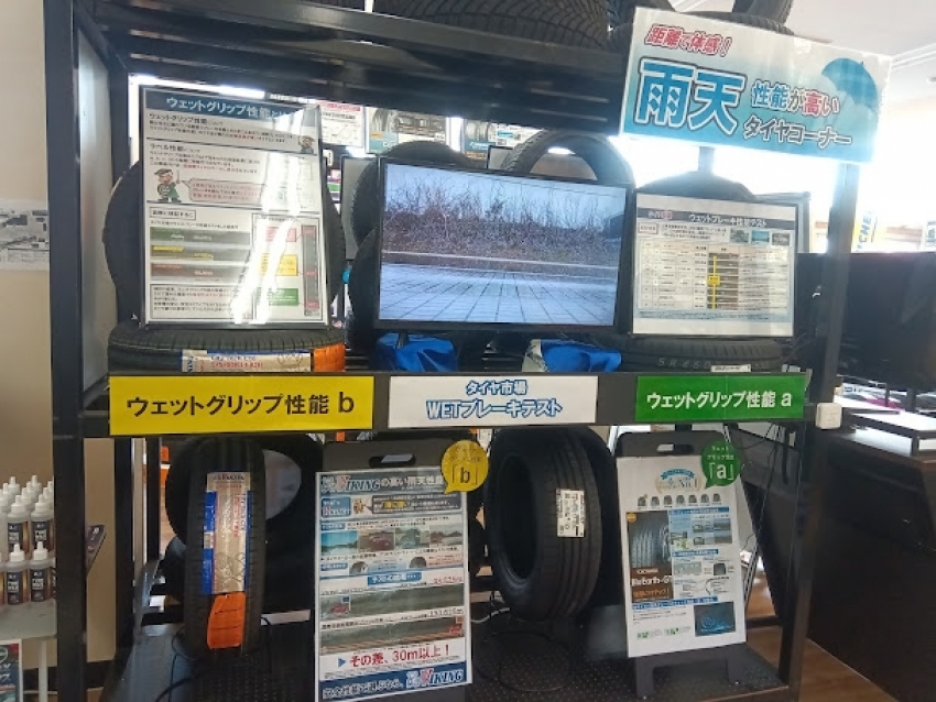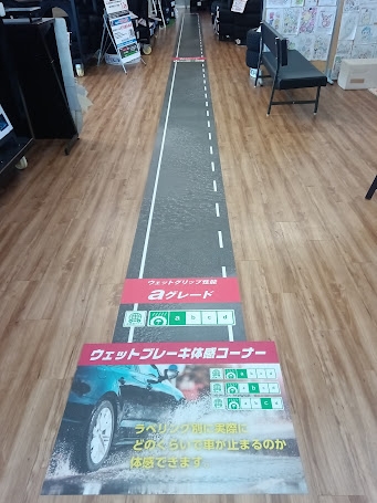 ウェットグリップ性能、aグレード bグレード cグレード でどれくらいの違いが出るかわらる体感コーナーをご用意しております。
